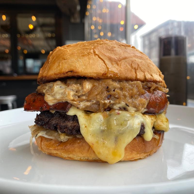 7 oz Wagyu Patty, Dijon, Old Major Italian Sausage, Sauerkraut, Pepperjack Cheese, Brioche Bun